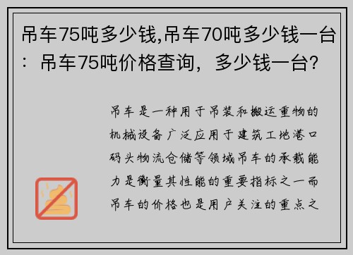 吊车一万小时(吊车一万小时:重机械维护与安全管理)